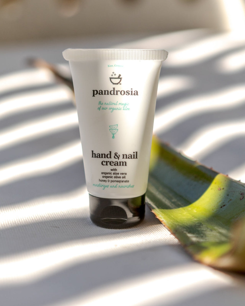 Σε όλα τα προϊόντα pandrosia, χρησιμοποιούμε ως πρώτη ύλη, την κορυφαίας ποιότητας, βιολογική αλόη που καλλιεργούμε στα κτήματα μας στην Κω, δίχως το παραμικρό ίχνος προσμίξεων από εισαγόμενο συμπύκνωμα αλόης.