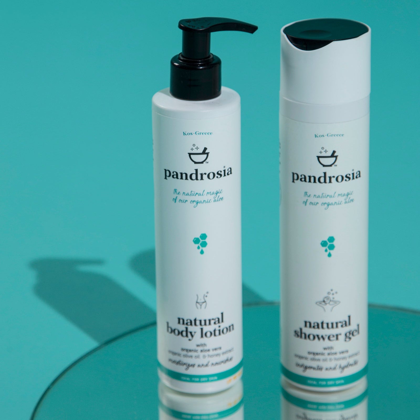 Τα προϊόντα pandrosia δεν περιέχουν τεχνητά χρώματα, αρώματα ή εισαγόμενα συμπυκνώματα αλόης. Χρησιμοποιείται μόνο αγνή, ωμή αλόη από τα κτήματα της οικογένειας στην Κω, σε συνδυασμό με σπάνια τοπικά βότανα, δημιουργώντας φυσικά ελιξίρια ομορφιάς, υγείας και μακροζωίας.