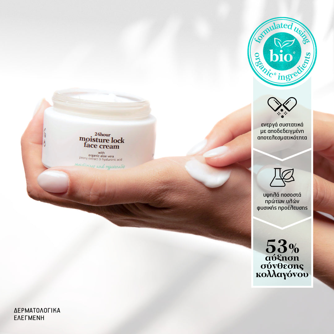 24ωρη ενυδατική κρέμα προσώπου με βιολογική αλόη, εκχύλισμα παιώνιας και υαλουρονικό οξύ 50ml